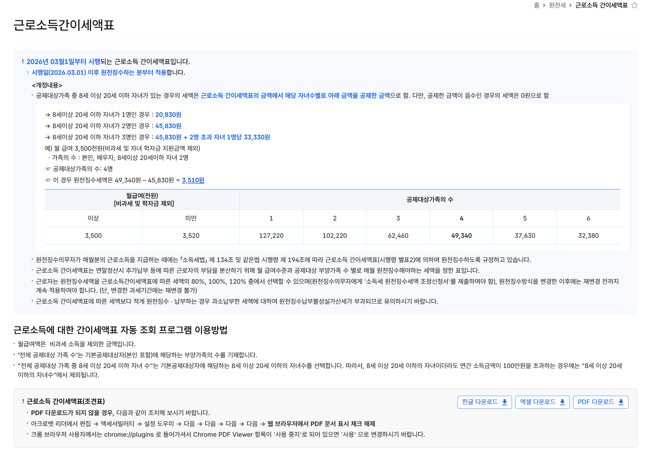 직원 급여는 근로소득 간이세액표를 기준으로 계산합니다. 월급이 같아도 부양가족 수, 자녀 수, 비과세 항목에 따라 실제 세액이 달라질 수 있습니다. 그래서 월급 300만 원이면 무조건 몇 퍼센트라고 단순 계산하면 틀리기 쉽습니다.